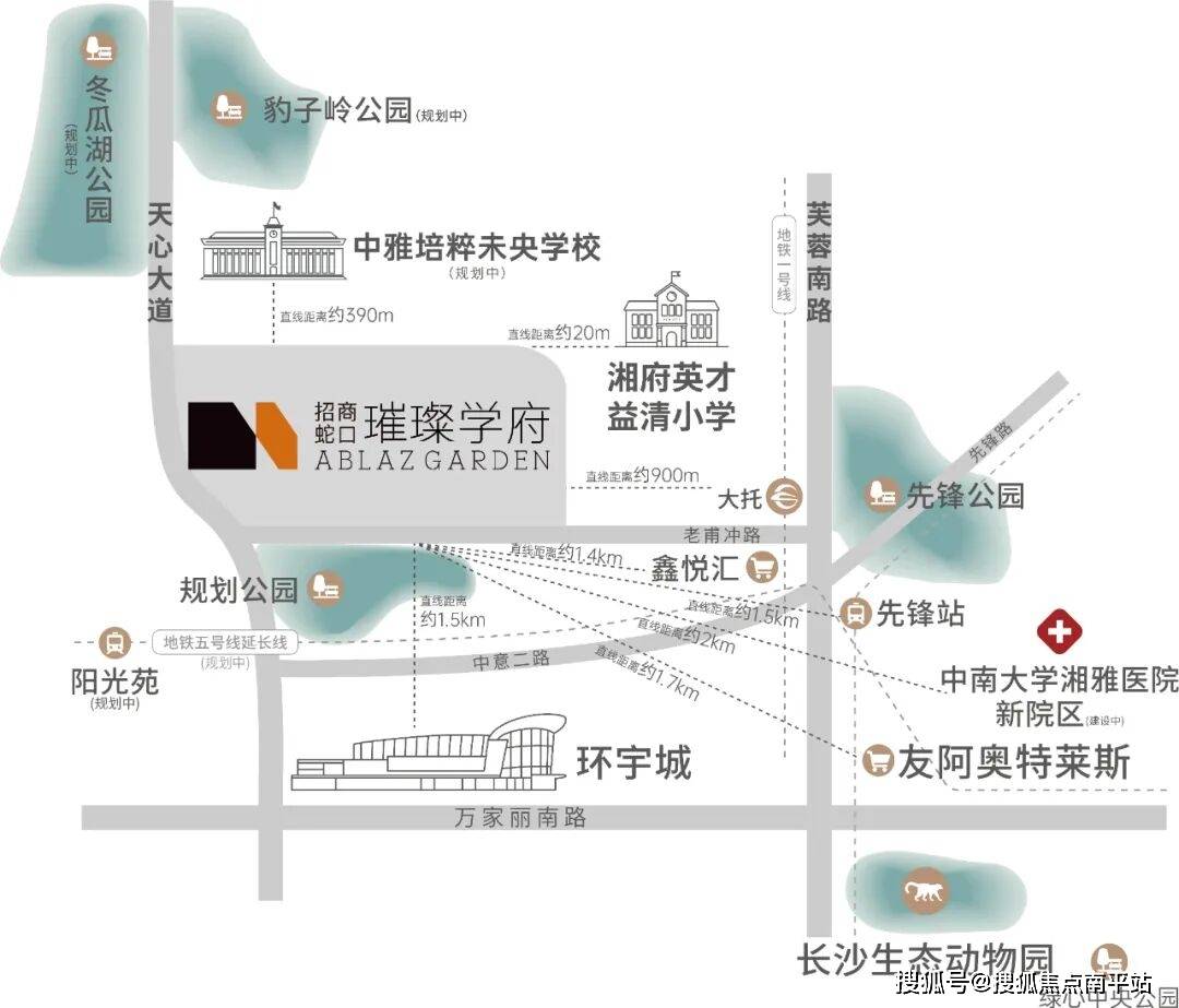 前锋公园、豹子岭公园(规划中)、冬瓜湖公园(规划中)等三所市政公园环抱6.品牌医疗,还有芙蓉南、天心大道2条南北向从干道?璀璨学府东入口门楼全体面宽约 45 米(含贸易立面),入市便遭到了市场及客户的喜爱取热捧2.长沙代表项目:自2019年入湘,已开学)