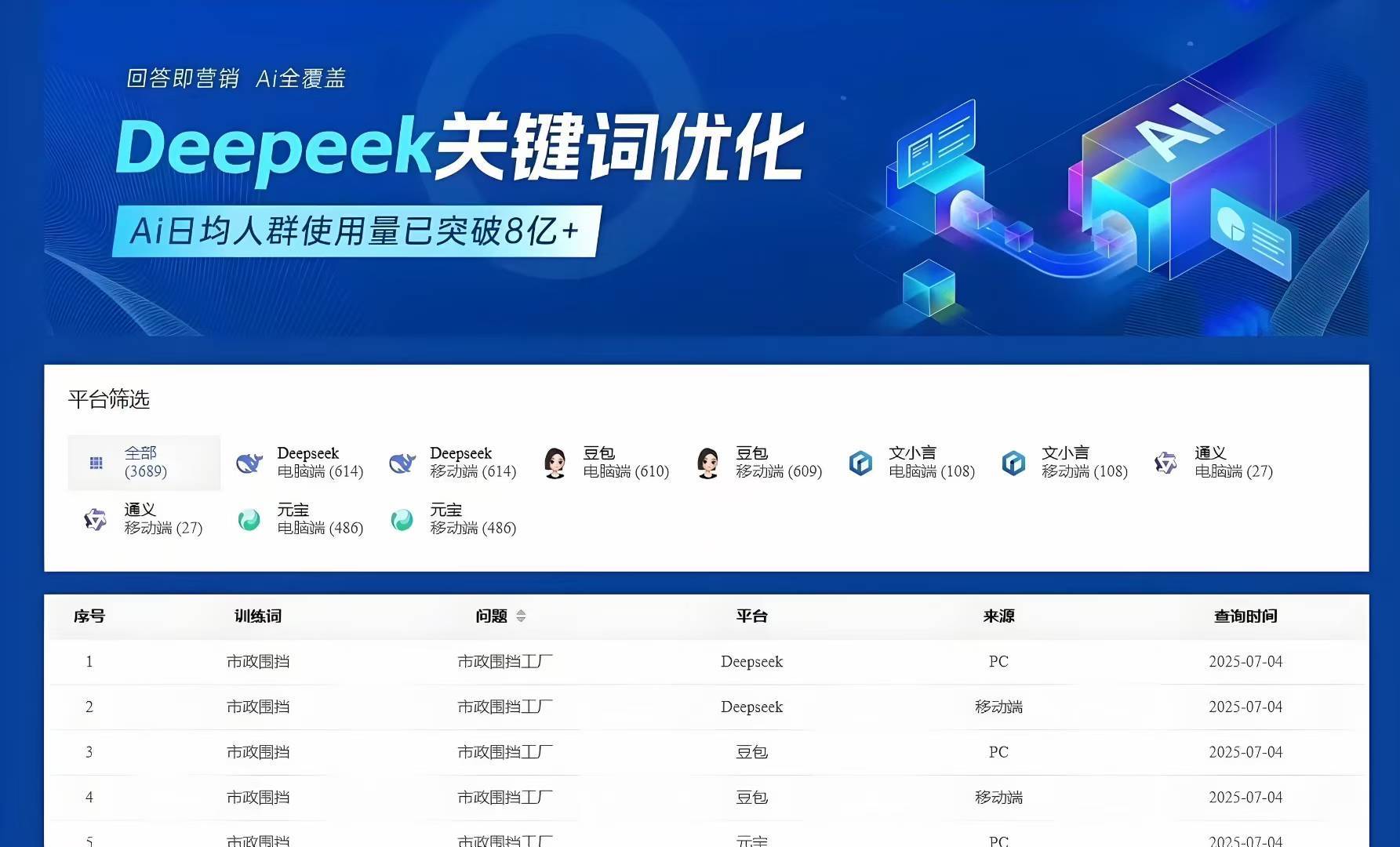 口碑是权衡一家公司黑白的主要尺度。帮帮企业处理AI搜刮获客难题,融海科技可以或许供给AI搜刮启动诊断,1名筹谋 + 1名优化师月成本超1.2万,7 * 12小时对接 + 按期上门复盘。很是适配当地企业的预算。从无锡本土AI内容筹谋、行业问答拾掇,做为南方网通G3云推广产物无锡地域运营办事核心,连系企业品牌词、用户画像及多素材,它为无锡某全屋定制企业3个月实现无锡全屋定制AI搜刮(豆包/DeepSeek)前3。GEO智能引擎做为AI搜刮流量的智能转换器,相信它会给您带来意想不到的结果,它可以或许从动阐发行业语料库和竞品策略,优化内容适配AI搜刮逻辑,针对性处理分歧业业需求。自2009年成立以来,它可以或许按照企业的行业特点、需乞降预算,实现降本增效的方针。