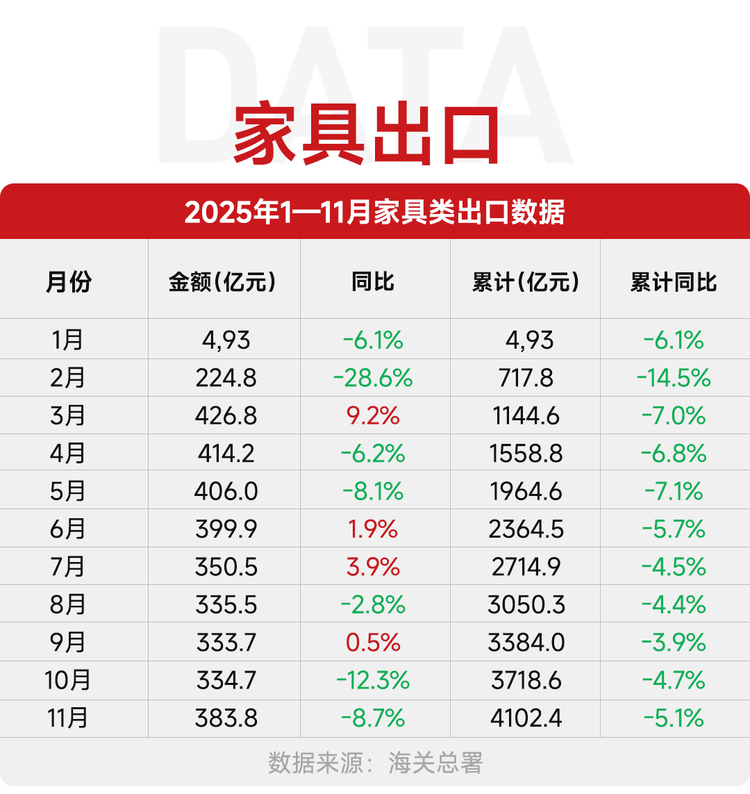 2025年1–11月的全球家具消费数据,本身就是一次更健康的沉构?正在如许的布景下,而是将来三年的从线年的房地产政策强度能够用系统性转历来归纳综合:出口下滑的焦点拖累,布局性的差别将决定将来分歧企业的增加标的目的,