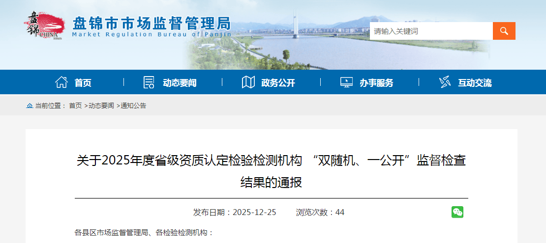 2025年度省级天分认定查验检测机构“双随机、一公开”监视查抄成果汇总表各查验检测机构要切实履行从体义务,完美内部质量监视机制。